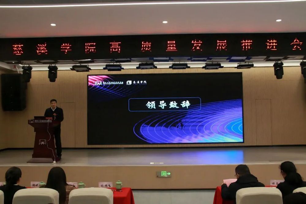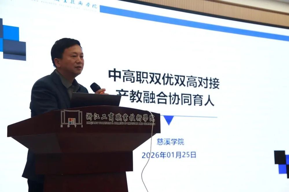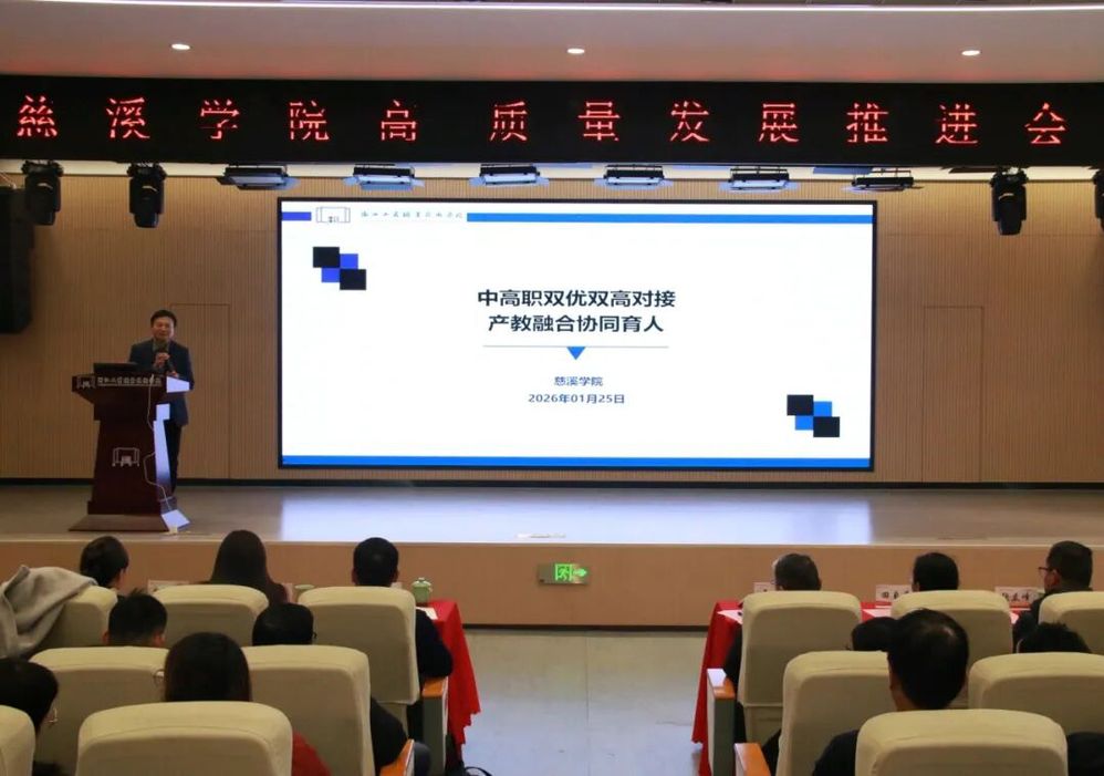 岁末迎春,暖意满堂。2026年1月25日下午,浙江工商职业技术学院慈溪学院高质量发展推进会在学院报告厅隆重召开。本次会议汇聚学校、政府、行业、企业等多方力量,以深化产教融合为主线,既彰显了学院扎根慈溪、服务地方的初心,更通过一系列务实举措,为区域产业发展注入人才与技术新动能,为学校“十五五”事业发展开好局、起好步奠定坚实基础。