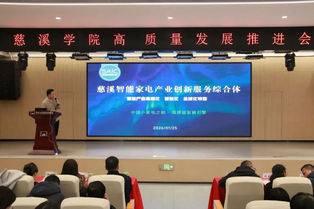 慈溪市智能家电产业创新服务综合体负责人徐少尉介绍了校企共建的标杆项目,并正式发布“潮塘英才计划”。