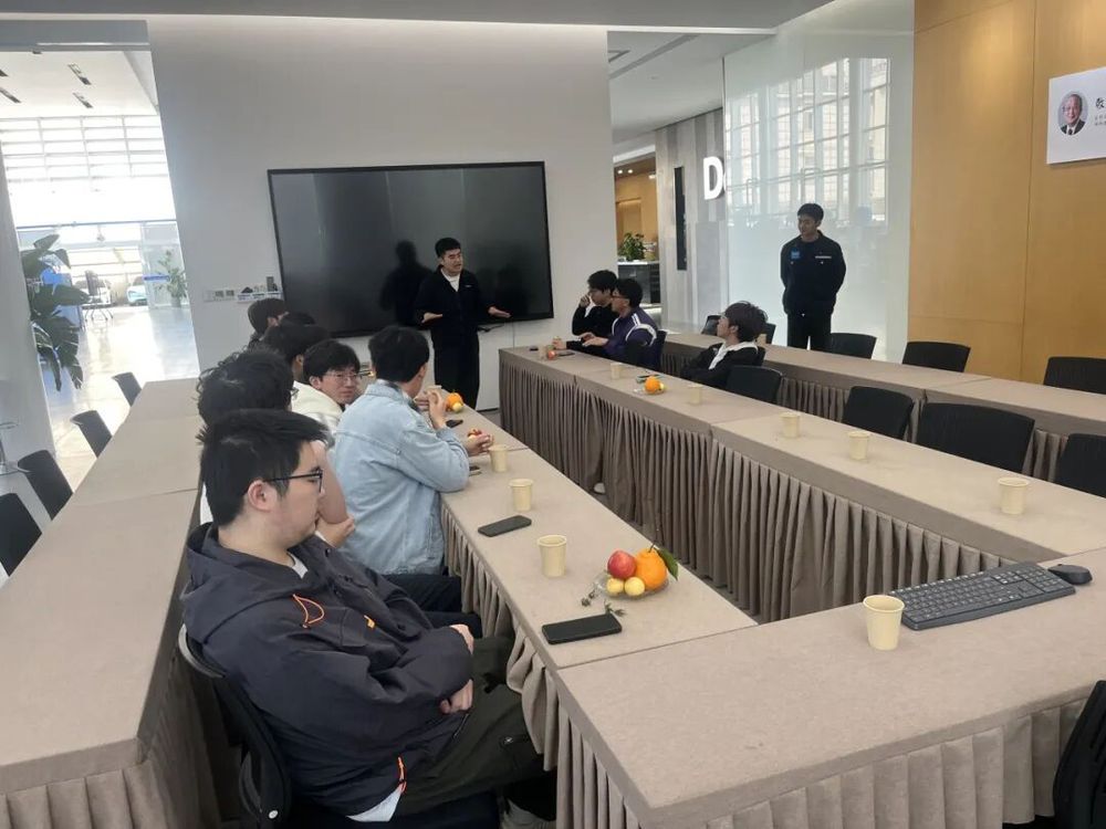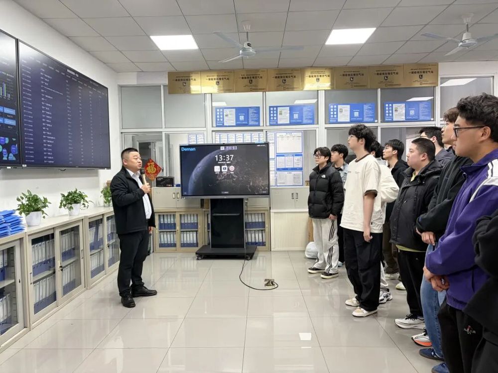 活动中,人力资源部叶部长带领师生参观厂区,介绍企业发展与行业态势。售后工程中心内,智能化售后管理平台实时展示设备运行与服务数据,生动呈现信息技术与工业服务的深度融合;生产中心里,自动化生产线与智能立体仓储系统,让同学们直观感受智能制造与现代物流的高效运转。质检车间与声学实验室中,技术人员讲解产品测试与优化流程,帮助学生将理论知识与生产实践紧密衔接,全面了解研发、生产、质控全流程。