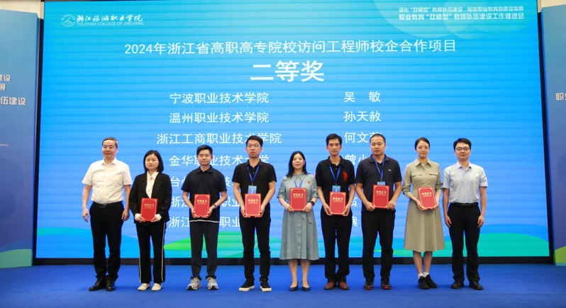 推进会首先进行了“2024年浙江省高职高专院校访问工程师校企合作成果评审”的现场汇报和答辩环节。经过激烈角逐,最终评选出一等奖3名,二等奖7名,三等奖10名。我校慈溪学院应用电子技术专业教师何文荣获得二等奖。
