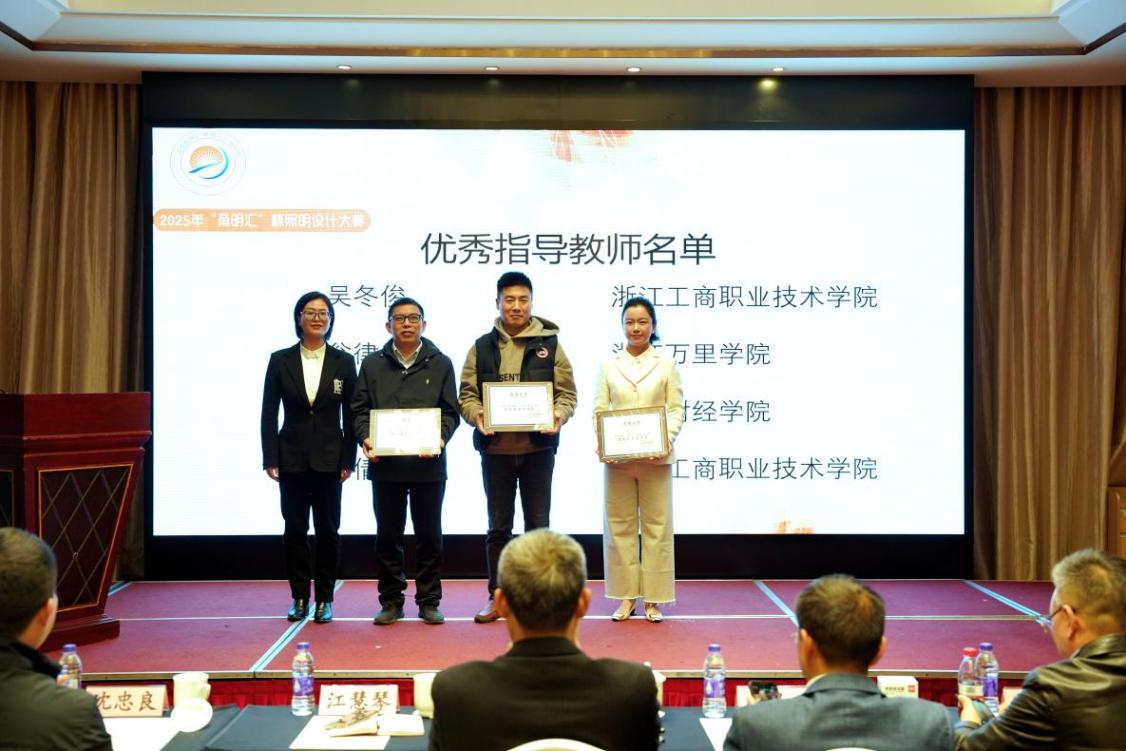 2025年12月2日,宁波市首届照明设计大赛颁奖仪式在宁海县西子国际会议厅圆满落幕。浙江工商职业技术学院工业设计专业学子在此次大赛中表现卓越,共斩获2金、3银、9铜及优秀奖等多项荣誉,充分展现了学校在创新设计与实践教学方面的扎实成效。