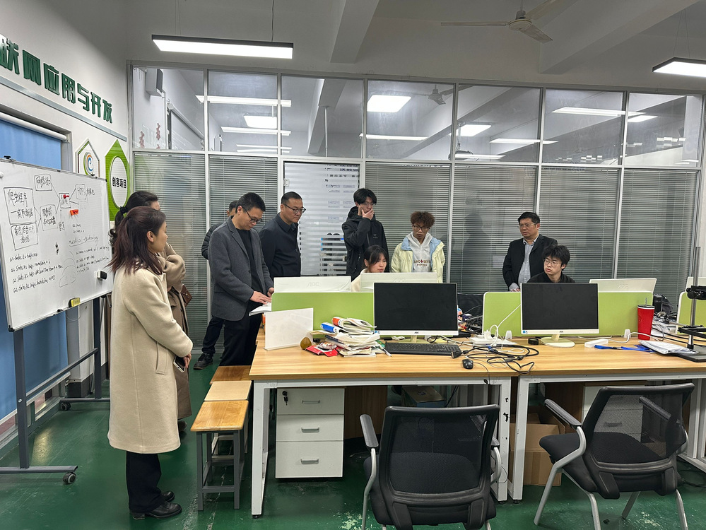 座谈结束后,陶培聪校长一行实地参观了我校软件技术专业工作室、工业软件创新工作室及校内实训基地。各工作室学生主动接待,详细介绍了工作室的专业定位、团队培养模式、项目实践成果,并现场展示了正在研发的优秀作品,充分展现了我校学子勤勉笃学、勇于创新的精神风貌。余姚第四职业技术学校一行对我校专业工作室建设给予高度评价,认为我校虽硬件设施朴实简约,但师生潜心钻研的学习热情、严谨务实的教风学风令人印象深刻,专业实践氛围浓厚,人才培养成效显著。
